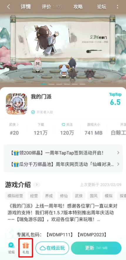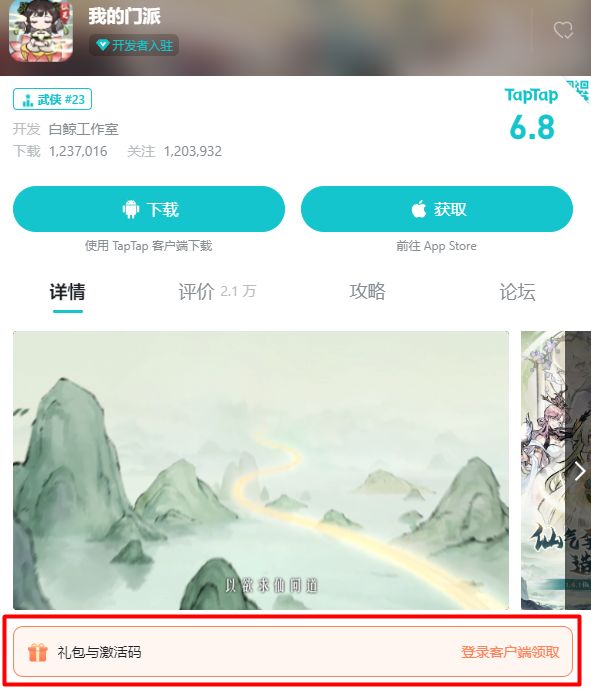 *由于TapTap平台限制,只能在TapTap App中才会显示【礼包与激活码】。麻烦使用网页和iOS系统的掌门,使用模拟器或者安卓手机安装TapTap领取。模拟器有浏览器,然后输入www.taptap.com,进入页面最底部有下载按钮哦