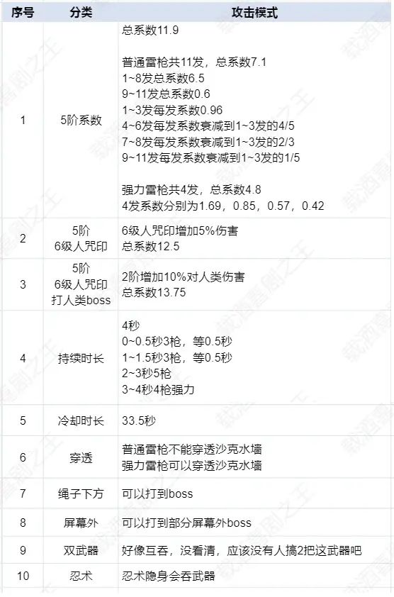6、另外,银枭属于雷系忍者,且专精人类boss,那银枭玩家拿个打人类boss伤害高的雷武器好像很合理。