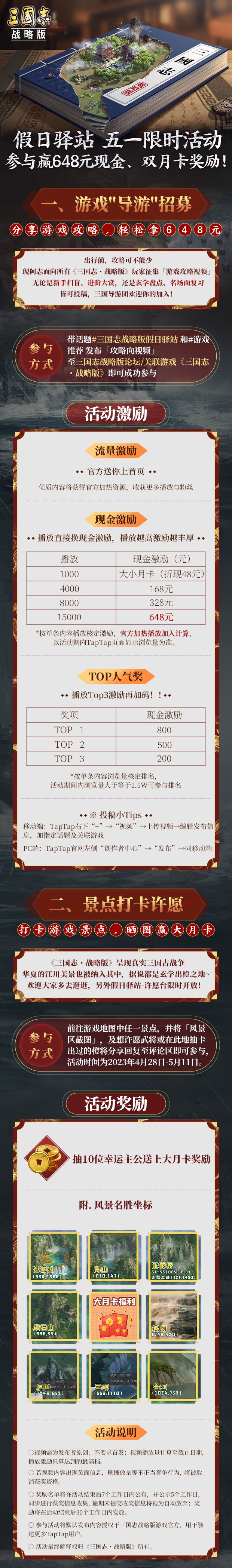 【已开奖】分享攻略、晒景点截图赢648元现金激励,三国志战略版假日驿站开启!