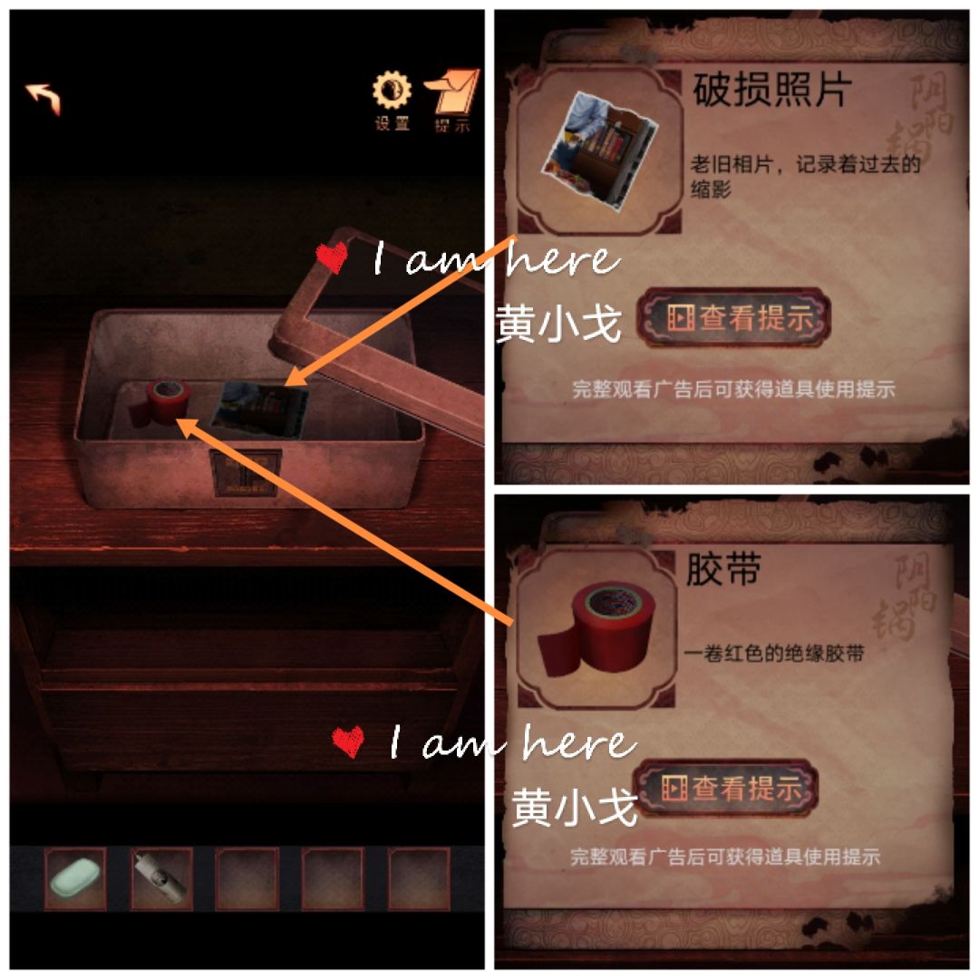 12.盒子打开,获得【胶带】和【破损照片】