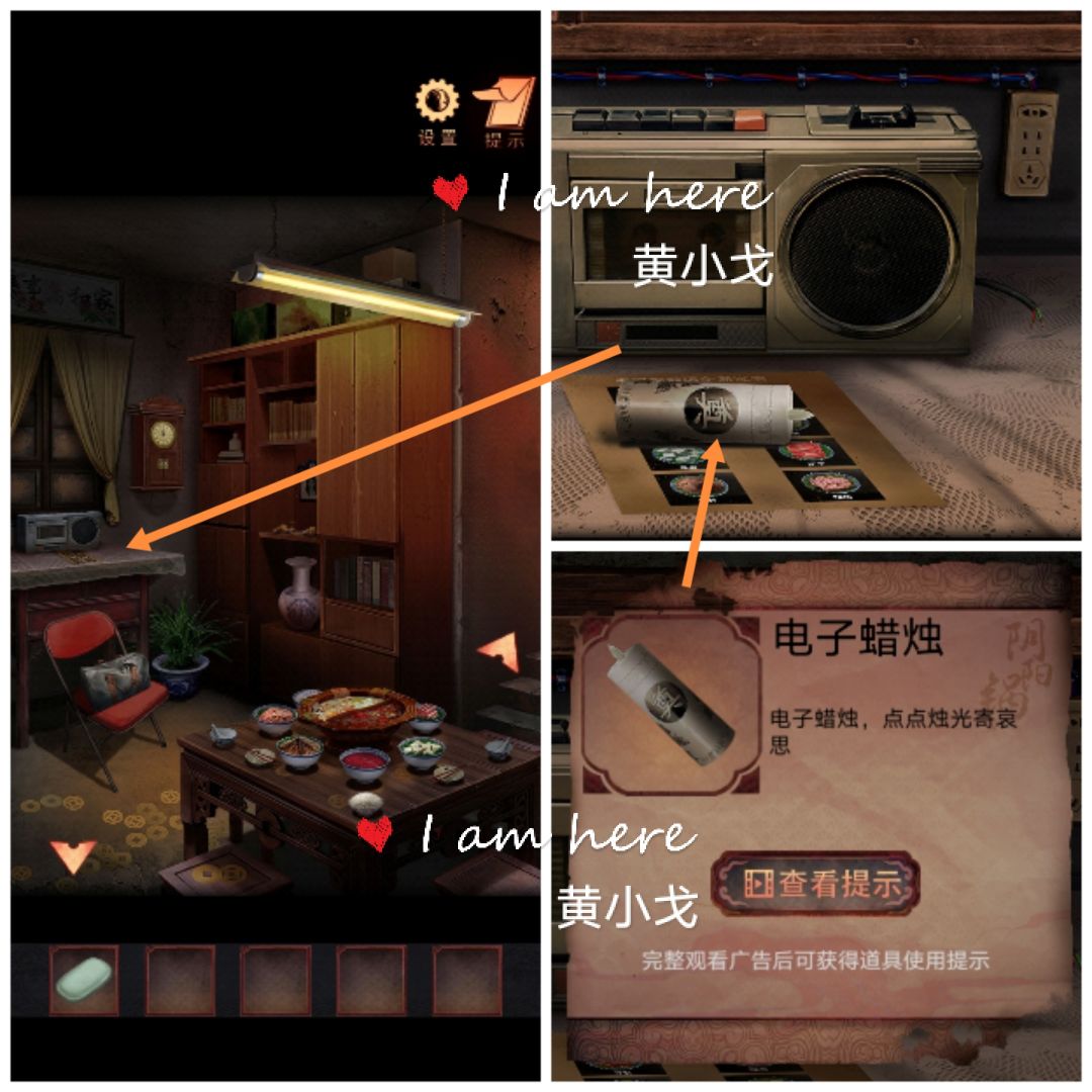 21.点击柜子上的遗照,放上两个【电子蜡烛】,遗照掉下,获得【磁带】