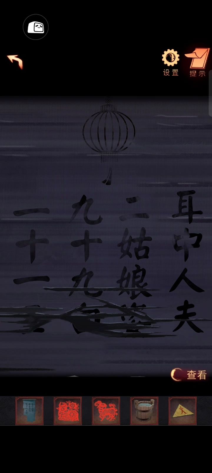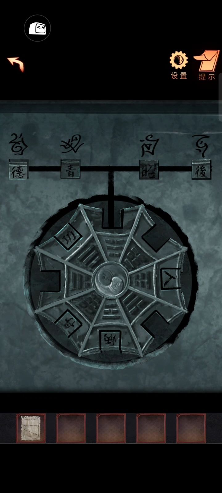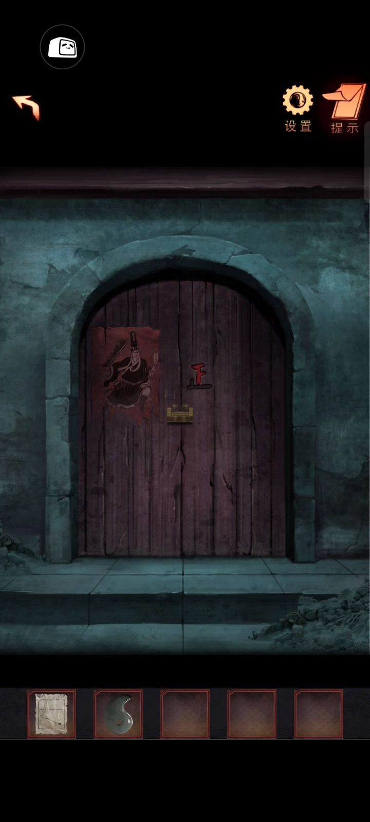 探索完差不多整个庙后,看到四个正字,红色为笔画顺序,按照顺序可知是狮鼎黑白,(最后一个字我没看到)但是可以通过穷举法得出最后一个字是箱。锁在黑色道长门贴的大门