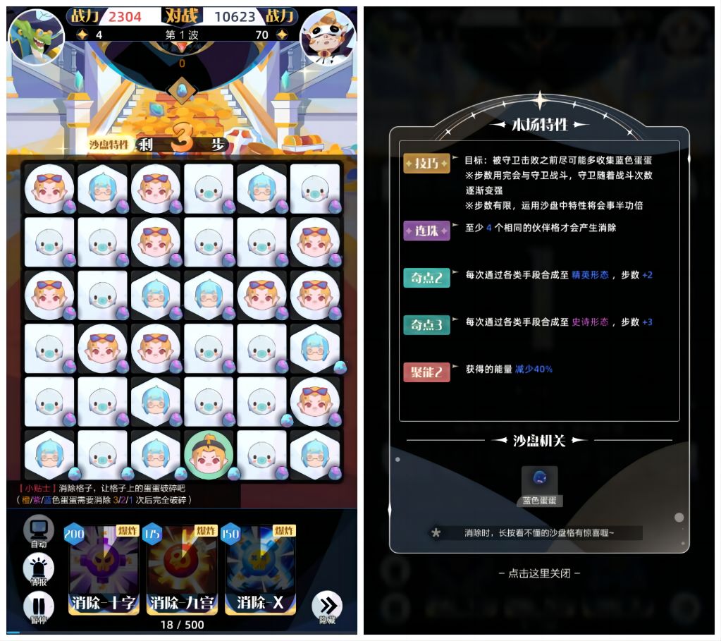 【征召】——每当拖出精英形态(及以上)的伙伴格后,随机增加3个10层的冰块(负面效果)(负面效果的格子超过沙盘格总数的3/4时则不再生成)