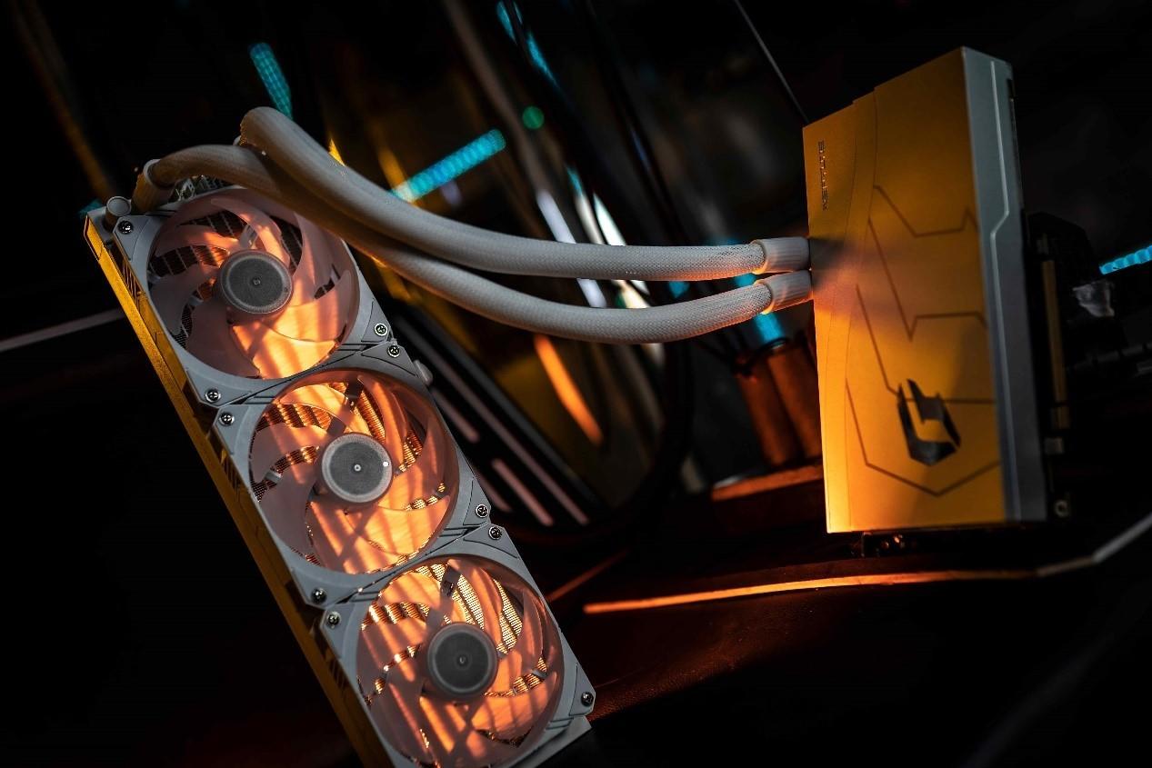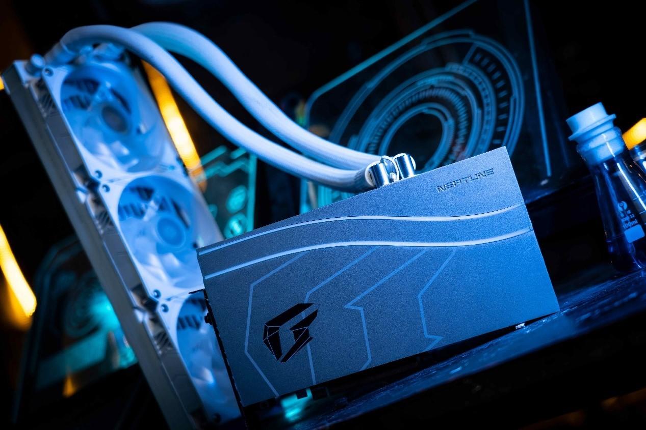 iGame GeForce RTX 4080 Neptune OC作为唯一一款一体式水冷显卡,将带领玩家感受“散热无忧”的游戏体验,RTX 4090将240mm水冷排升级成为360mm,在同样的环境下考机温度在55度左右,散热实力惊人。与前代不同的是冷排风扇由显卡进行控制,增加风扇集线器,可支持玩家更换风扇。可旋转的水冷头可以适应更多的机箱环境,高端的水冷配合直触热源的大尺寸铜底及强力水泵让它拥有拔尖的散热能力。