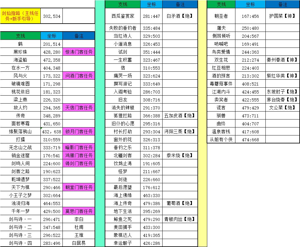 接下来就是讲想要做一把剑如何获取以及地方声望如何快速获取。七把名剑开局免费两把,先是梓落(万金油)然后江湖行做完给无痕,重复获得会自动转换成开锋(20级)需要的材料,获取途径如下图↓