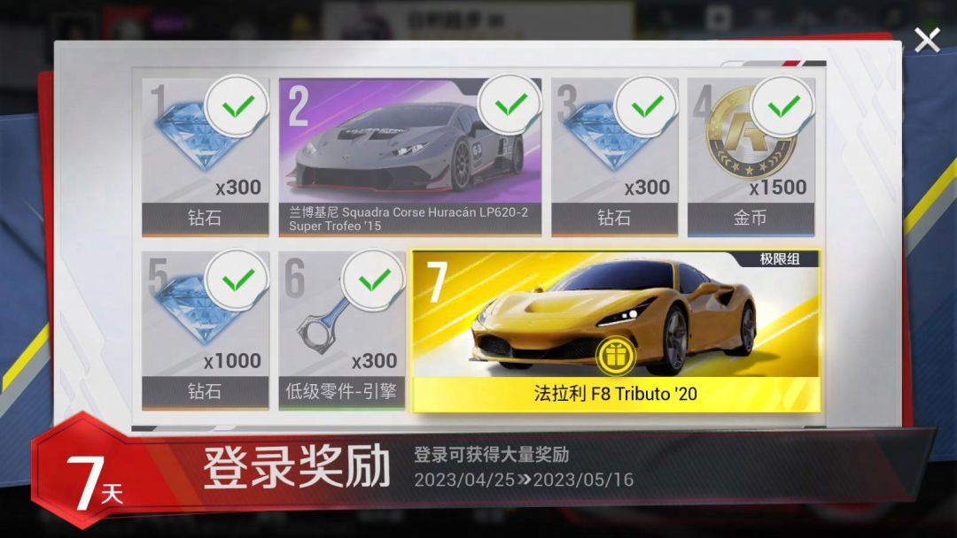 极速测试第七天,车手们登录游戏,即可领取传奇座驾