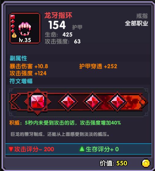 如果走位灵活或者能秒杀怪物 选【龙牙指环】