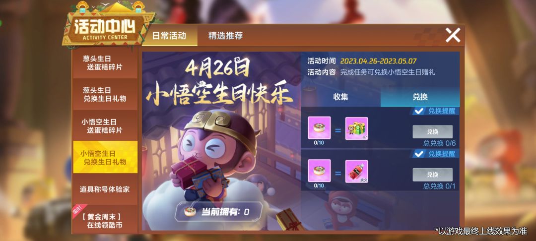 4月26日-5月7日,来一起收集小悟空生日碎片庆祝他新一年的提升吧,碎片还可兑换小悟空生日盲盒、悟空艳红喷漆!