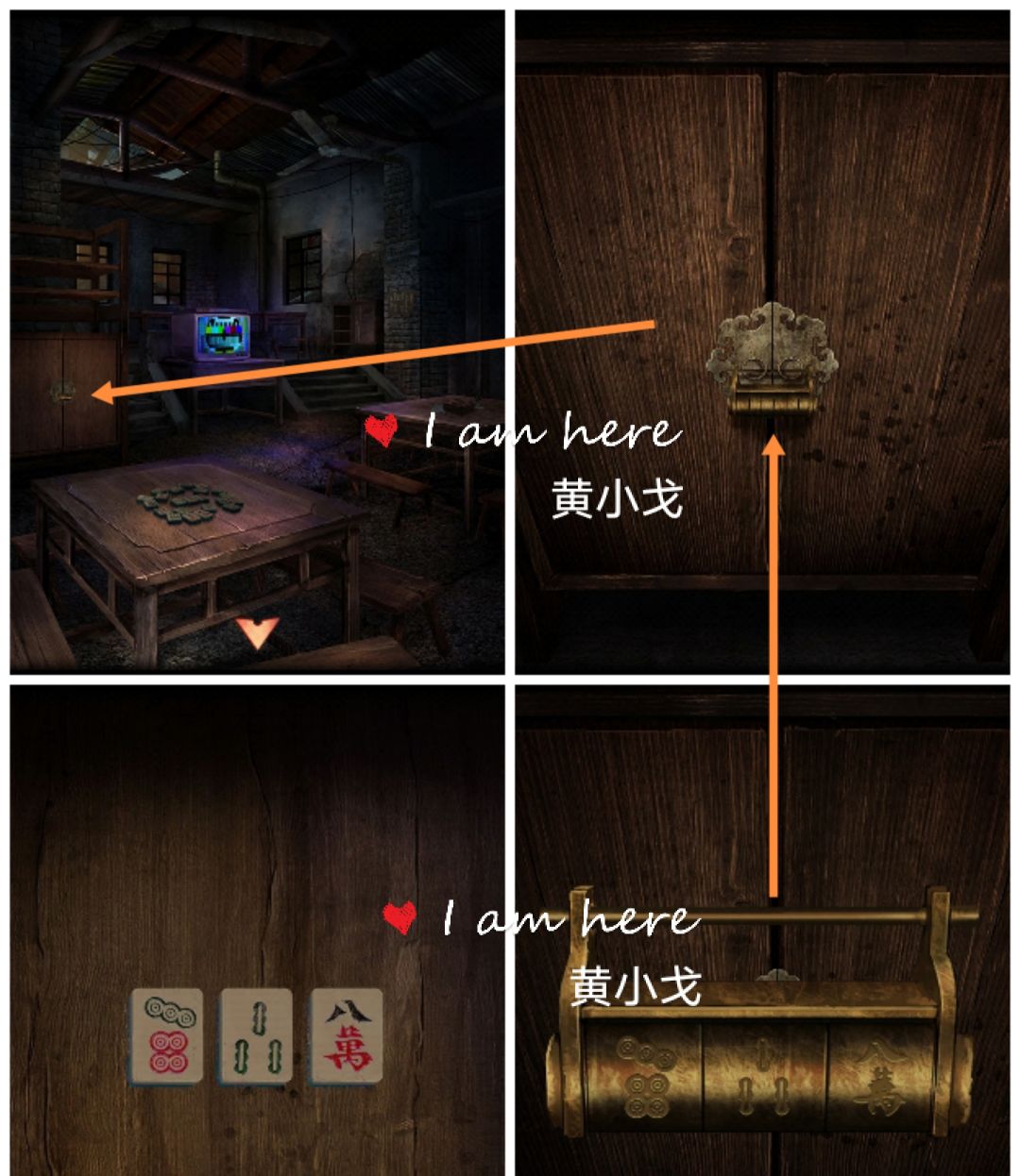 10.点击柜子上的锁,根据剩下的麻将信息,打开密码锁:七筒、三条、八万