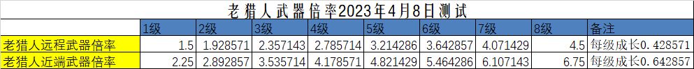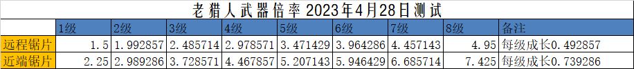 2023年4月28日更新后测试老猎人武器倍率如下图