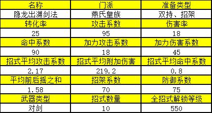 解锁条件:臂力不小于85;根骨不小于85;《隐龙出渊剑法》等级不小于300级。