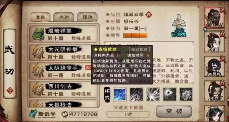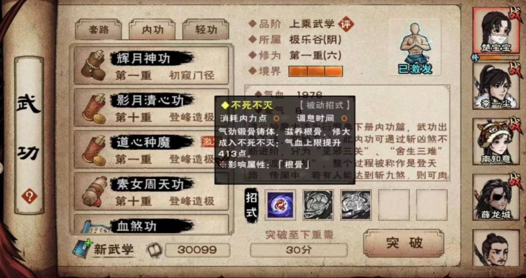 极乐谷最难搞的就是镇派内功(顺便提一下,极乐谷没有基础~进阶的内功,所以开局想去过渡极其痛苦)