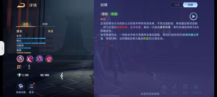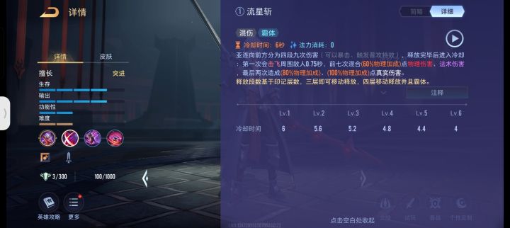 aov里的,不知道在王者了会不会调整,看看做个参考就行,个人觉得就是王者里的下一个夏侯惇,但是比夏侯惇伤害高的多,物伤,法伤,真伤,不可选中,减速,回血,击飞,霸体,护盾都有,一秒十三剑,普攻自动追击,伤害爆炸的攻速机器