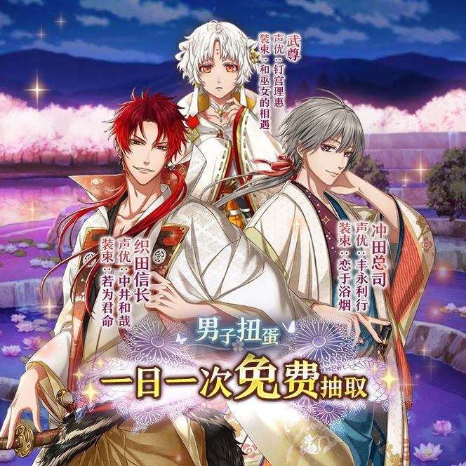 8月10日15:00~8月18日12:00期间,以下活动男子将在扭蛋中出现概率提升!巫女大人可通过点击主界面滚动宣传图及“召唤”按钮进入活动扭蛋界面进行召唤。