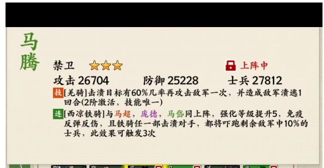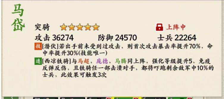 马岱是前期必须5星的绿卡,因为马岱自带技能能带来稳定的一手输出,
