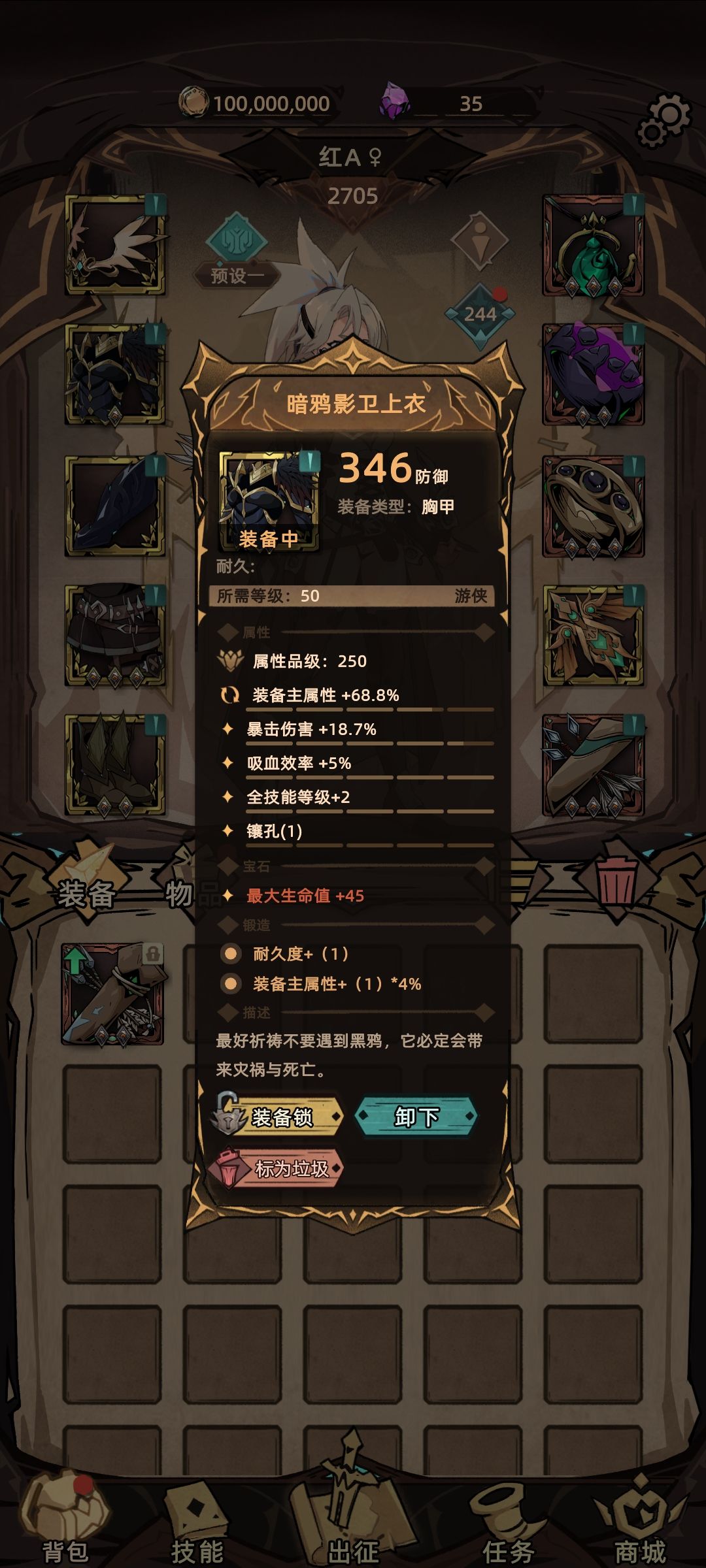 我的装备太垃圾了,想要的死活刷不出来,赶时间也就凑合用了,很多装备是可以替换,有更优选择的。![[嗒啦啦4_捂脸]](https://img.tapimg.com/market/images/9ee8426de6eb6863c01e62c14ca8eef7.gif)