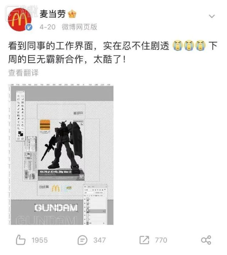 至于为什么麦当劳选择了巨无霸,大概因为元祖是《高达》中的经典机型,而巨无霸则同样是麦当劳的经典汉堡。