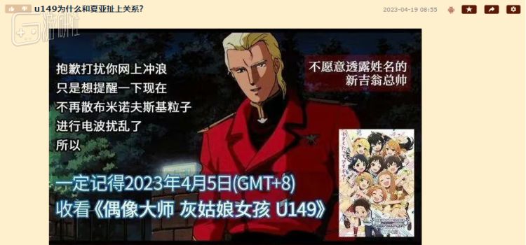而以此为原点,梗的传播又呈现出一种“由点到面”的发散式形态。得益于46年的时间里,《高达》为观众提供了大量可以被转化成“梗”的素材,于是《偶像大师U149》中的各种剧情都被与《高达》中的名场面联系了起来,最终形成了这场轰轰烈烈的造梗运动。