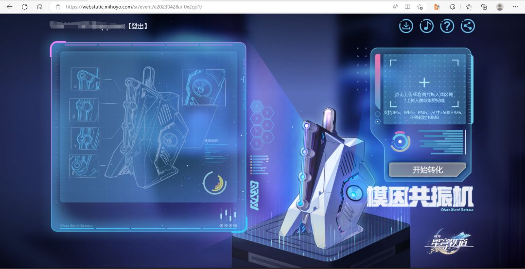 根据米哈游在活动主页的介绍,这是一个在AIGC基础上自主研发的图生图H5工具,它可以把一切有头有脸的图片转化成《崩坏:星穹铁道》中的看榜娘三月七。