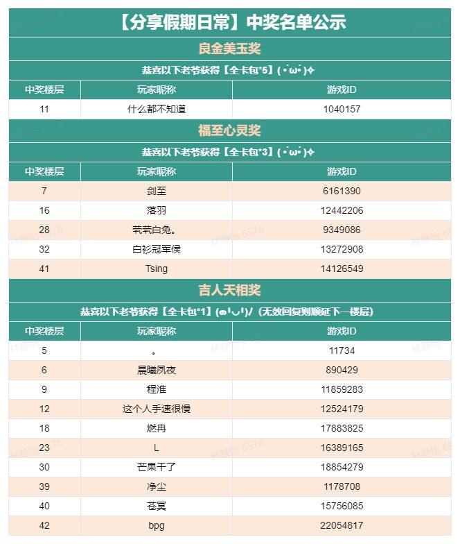 2.从有效回复中选取5位大人送出:【全卡包*3】