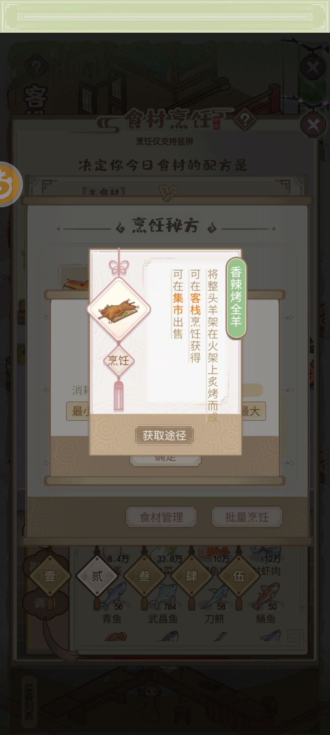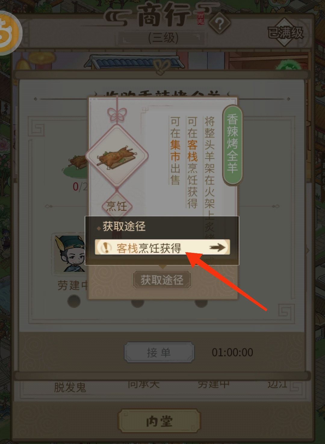 举例:商行接到客栈任务但没库存时可以按以下步骤快速制作所需菜肴。