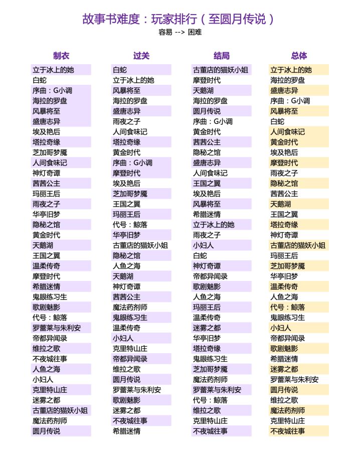【故事书难度排行(玩家主观打分)】