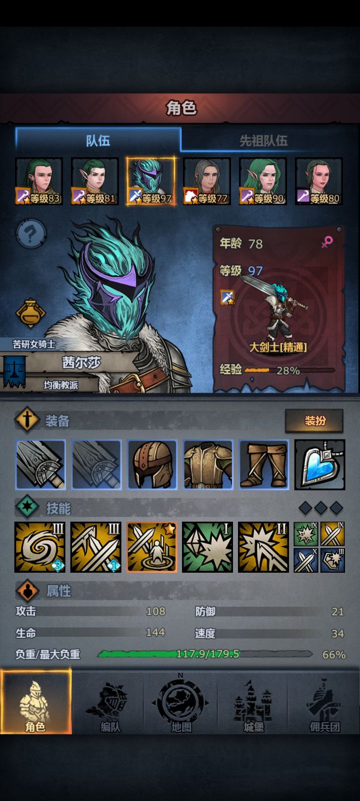 其他5个最终阵容(有更好的苗子小公主可换,但是得是反击大剑,打君卫和剑鞘都很方便。)