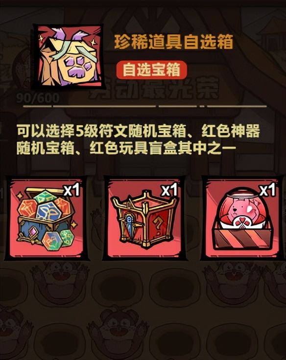 砸地鼠时有概率出发特殊攻击,额外清除左右、上下、上下左右的地鼠,触发特殊攻击额外砸的地鼠,也会计算到触发鼠王、鼠后的目标数量上,当砸中地鼠达到380次时,驱逐鼠后可以获得珍稀道具自选箱,可以选择5级符文随机宝箱、红色神器随机宝箱、红色玩具盲盒其中之一。当砸中地鼠达到600时,驱逐鼠王可以获得传说道具自选箱,可以从以下奖励中选择一个:两个5级符文自选礼包、两个红色神器随机宝箱、金色玩具自选箱、宠物改造石、刻印碎片,金色玩具自选箱可以选择狂欢铃铛、神舟火箭、玩具水枪、魔仙权杖。