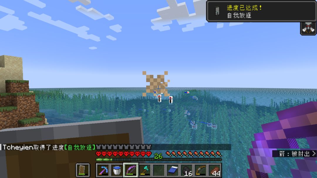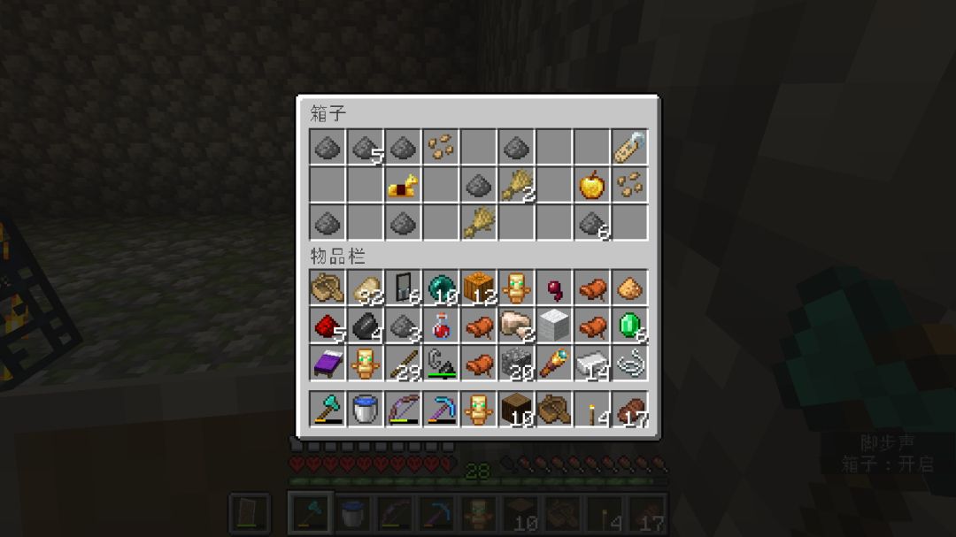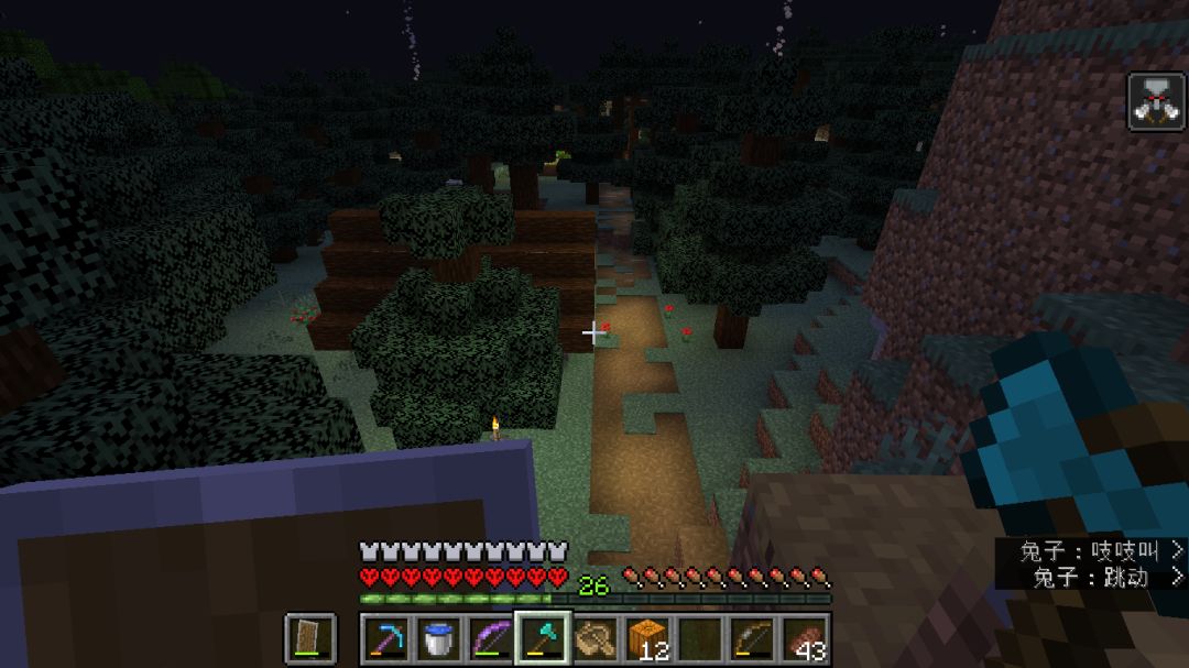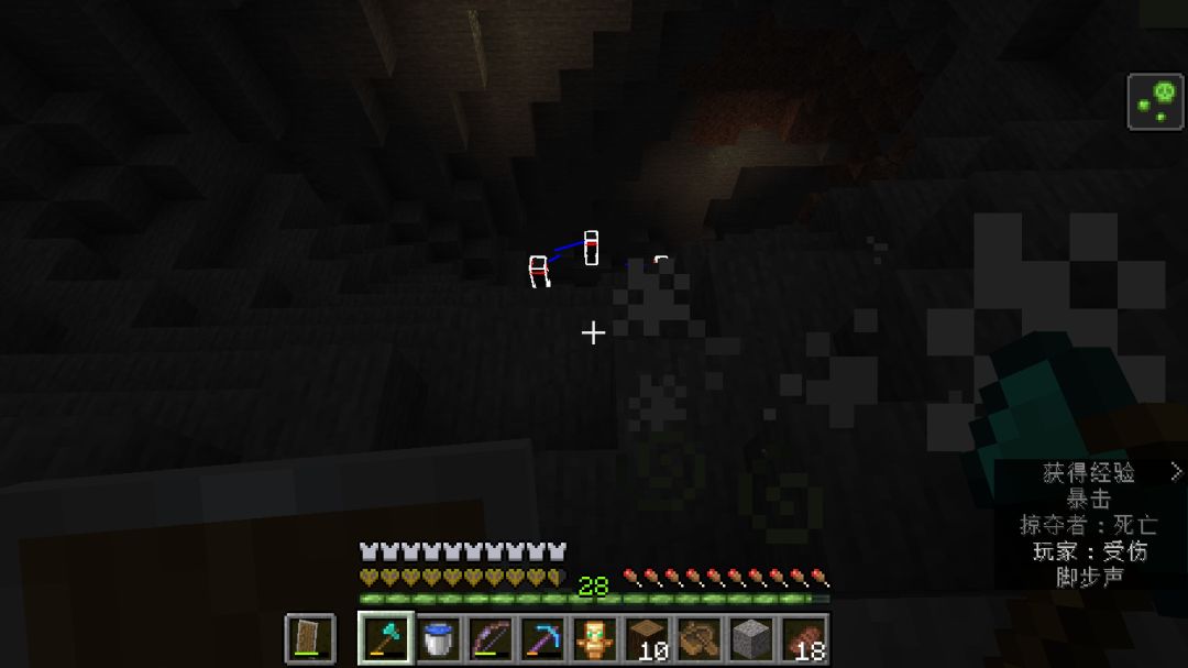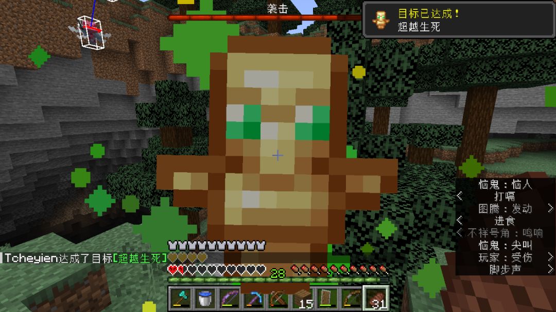 最后一波打的时候,箭用完了(没有无限弓的痛),发现还有怪没死,四处寻找最后发现村庄下的洞穴里有四个卫道士和一个女巫。。。只能眼睁睁看着袭击结束