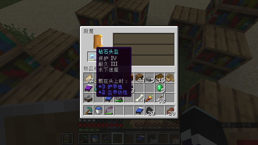 胸甲一发入魂,头盔有个保护四和耐久三,其他钻石装备附魔实属一言难尽