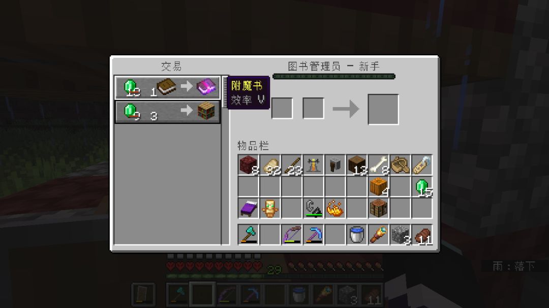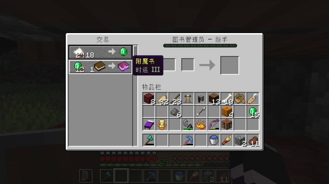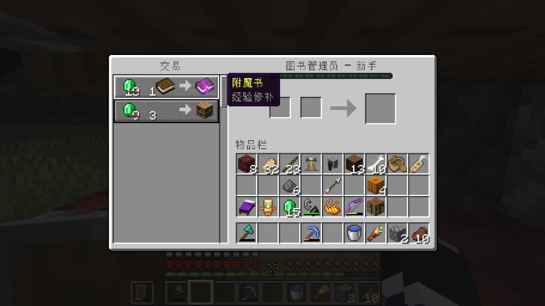 途中还遇到其他价格便宜的附魔,但是优先级都没有经验修补高