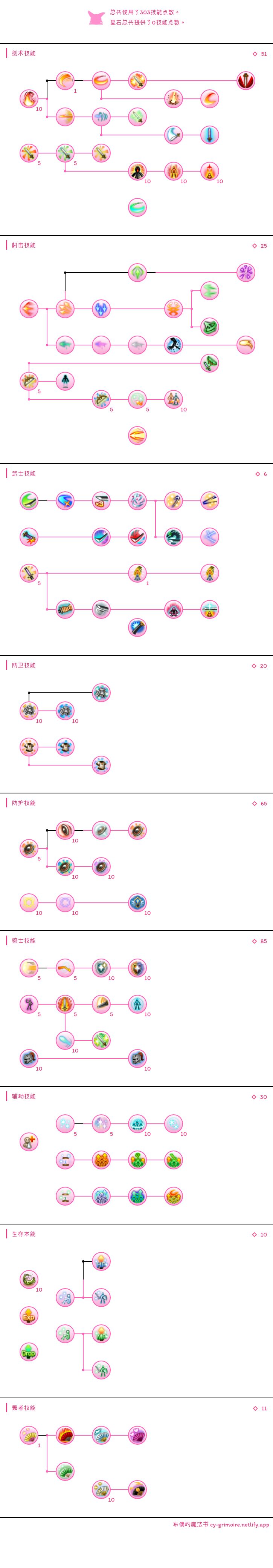 然后是后续加点:|总共使用了303技能点数。