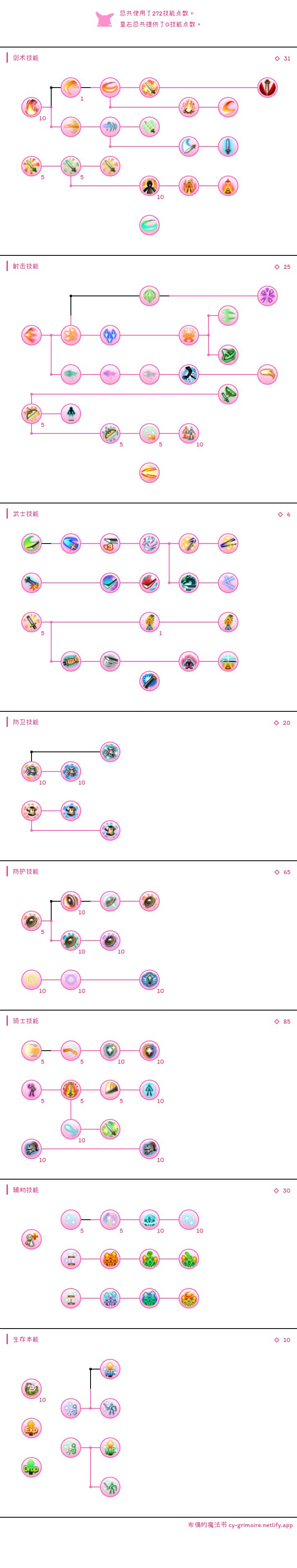 技能加点:|总共使用了272技能点数。