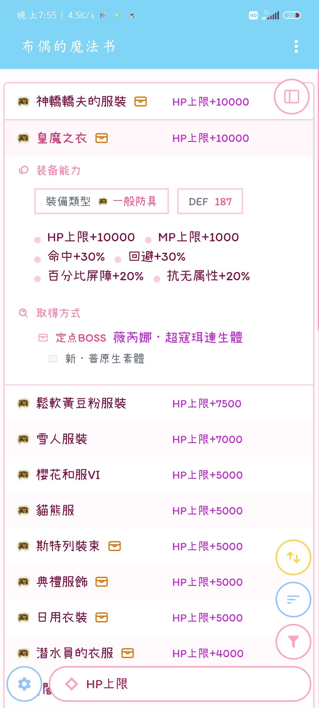 加血最多的衣服,但是很难出,皇魔也不好混