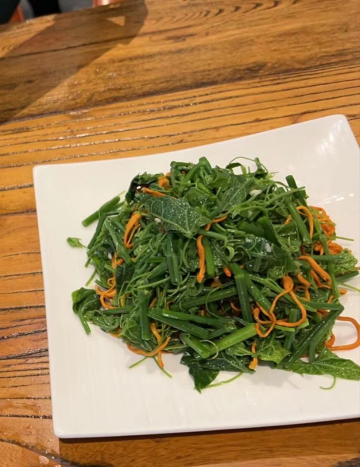 我爸去北京点的一盘炒菜,南瓜苗炒虫草花。
