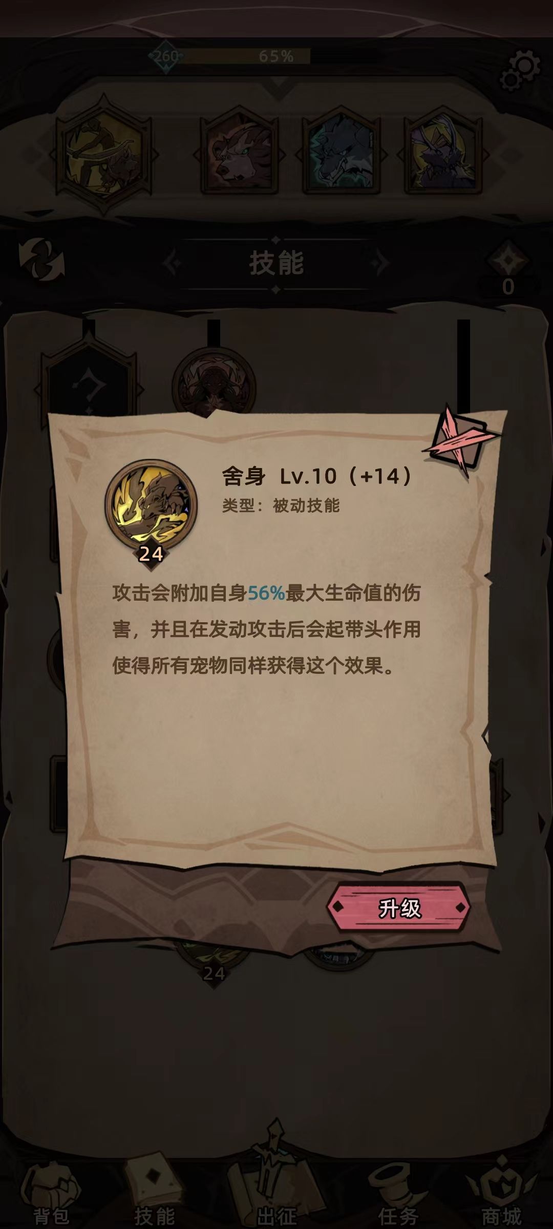 舍身、野兽之心、巨兽之魂必加满,余下的点随意加