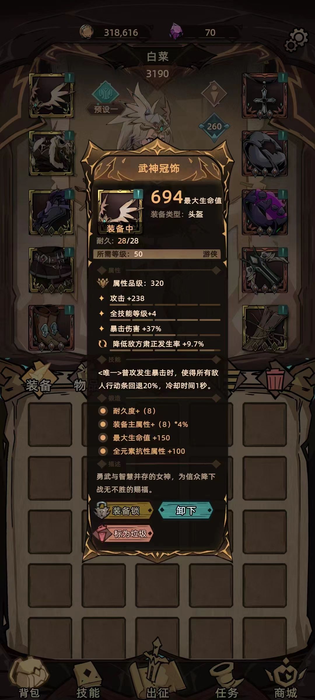 武神冠饰-暴伤、肃正、技能+4