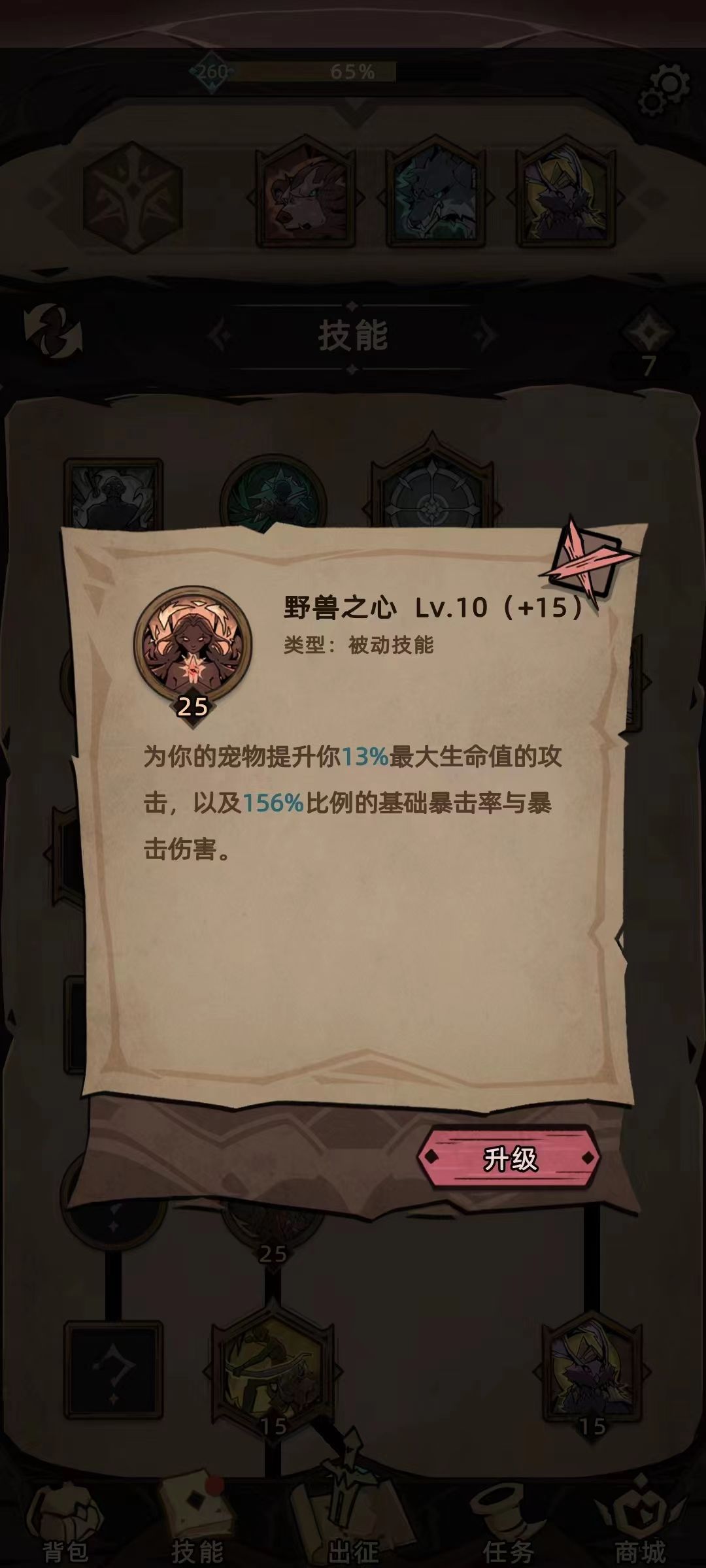 因为野兽之心的效果,动物继承暴击,所以选择潜能塔