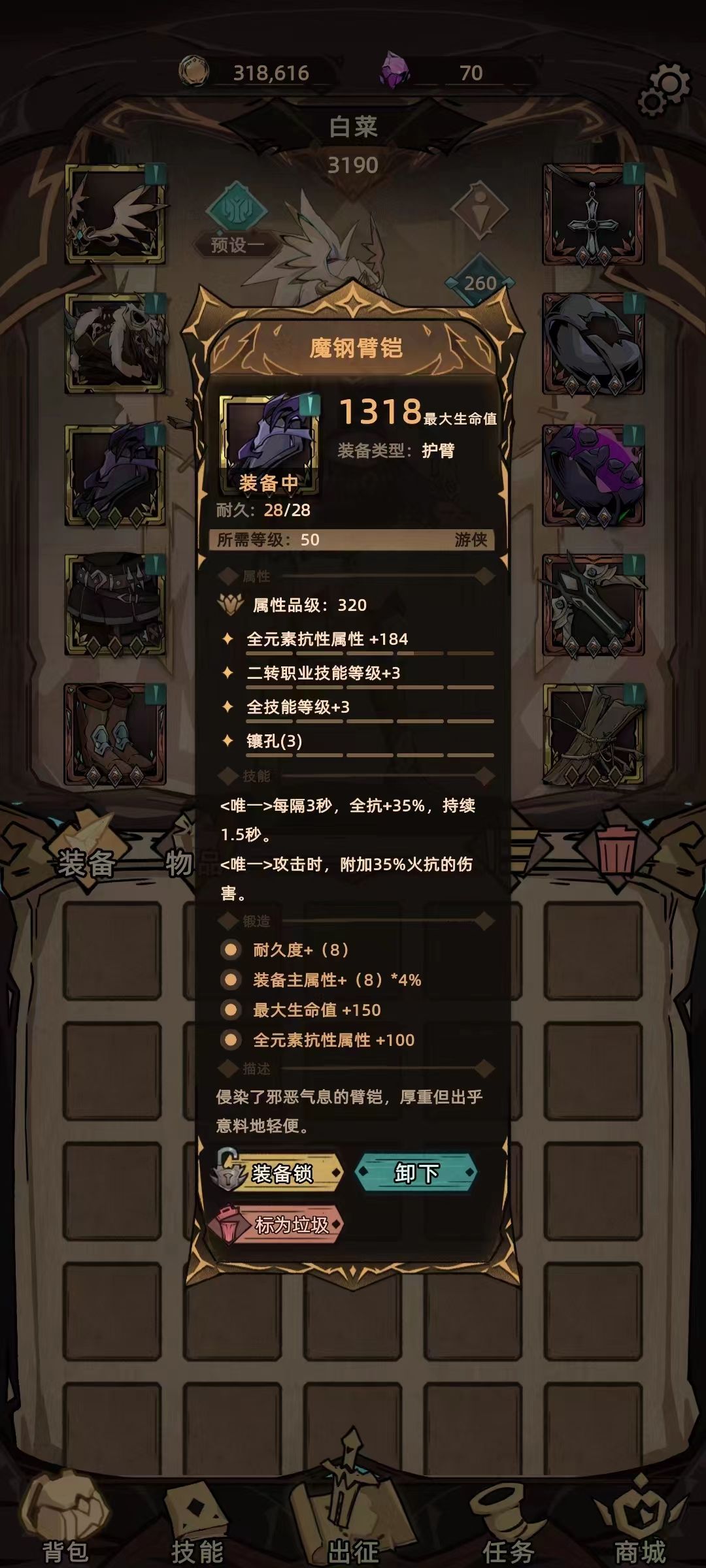魔钢臂铠-技能+3