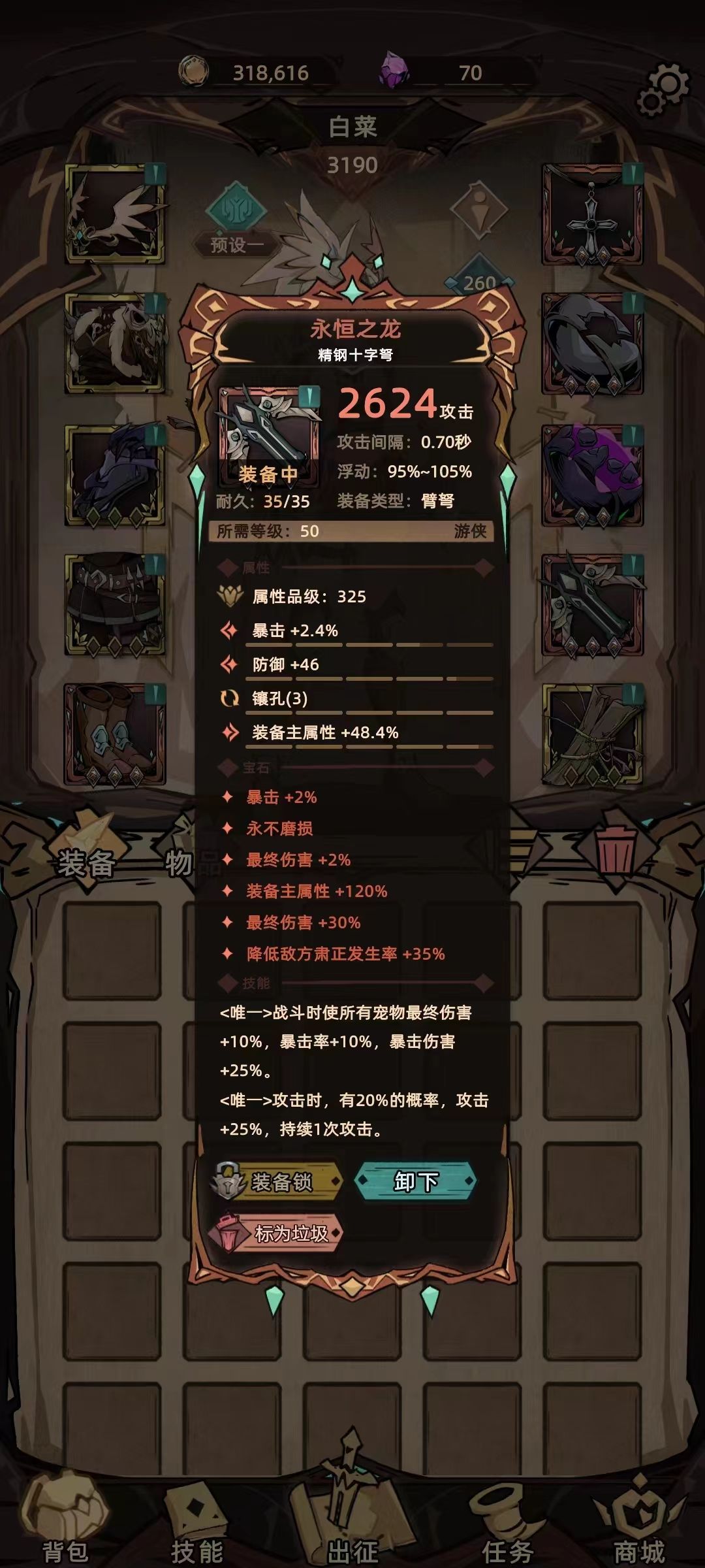 永恒之龙-120主属性+32终伤+35肃正,目前见过的最好武器,就是好词条难出