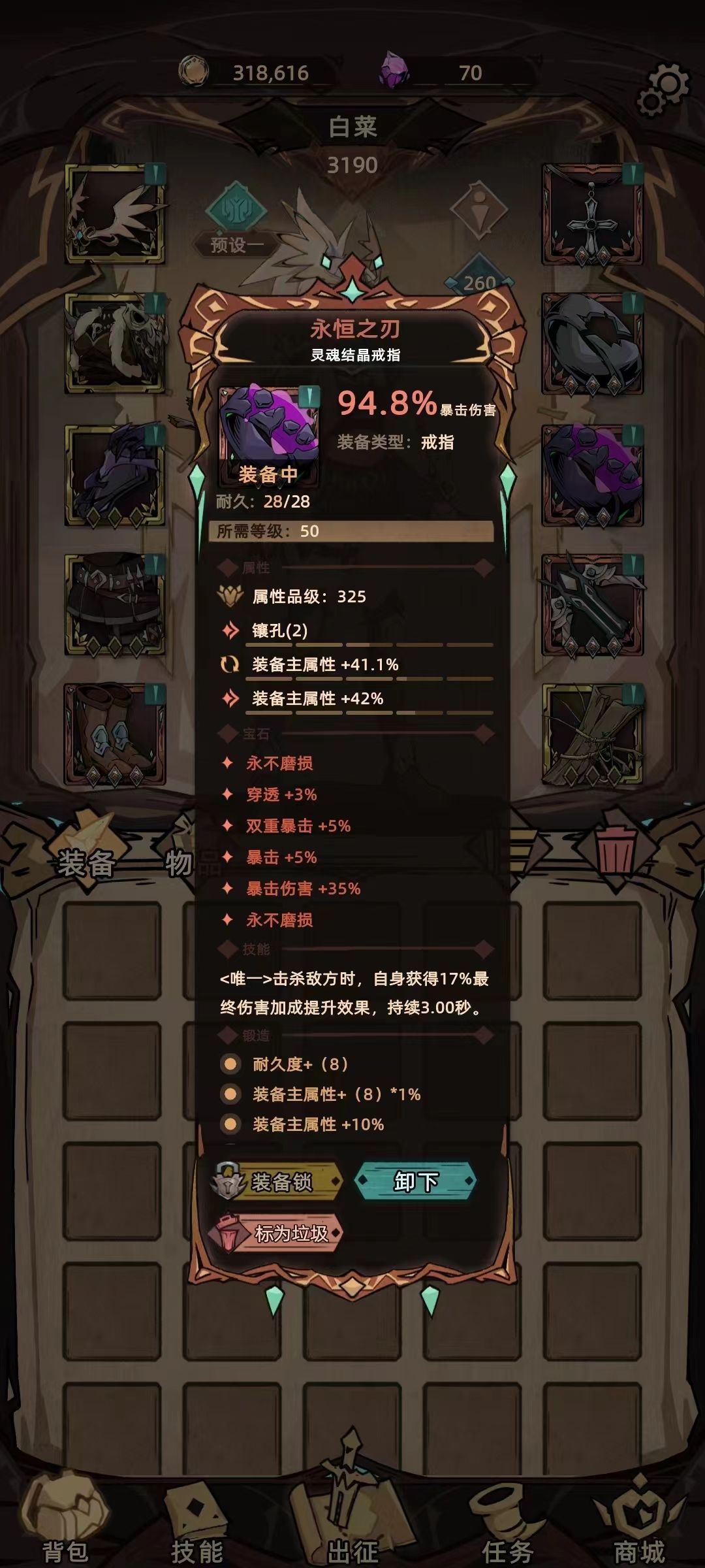 戒指2号位-没找到特别合适的,永恒之刃先用着