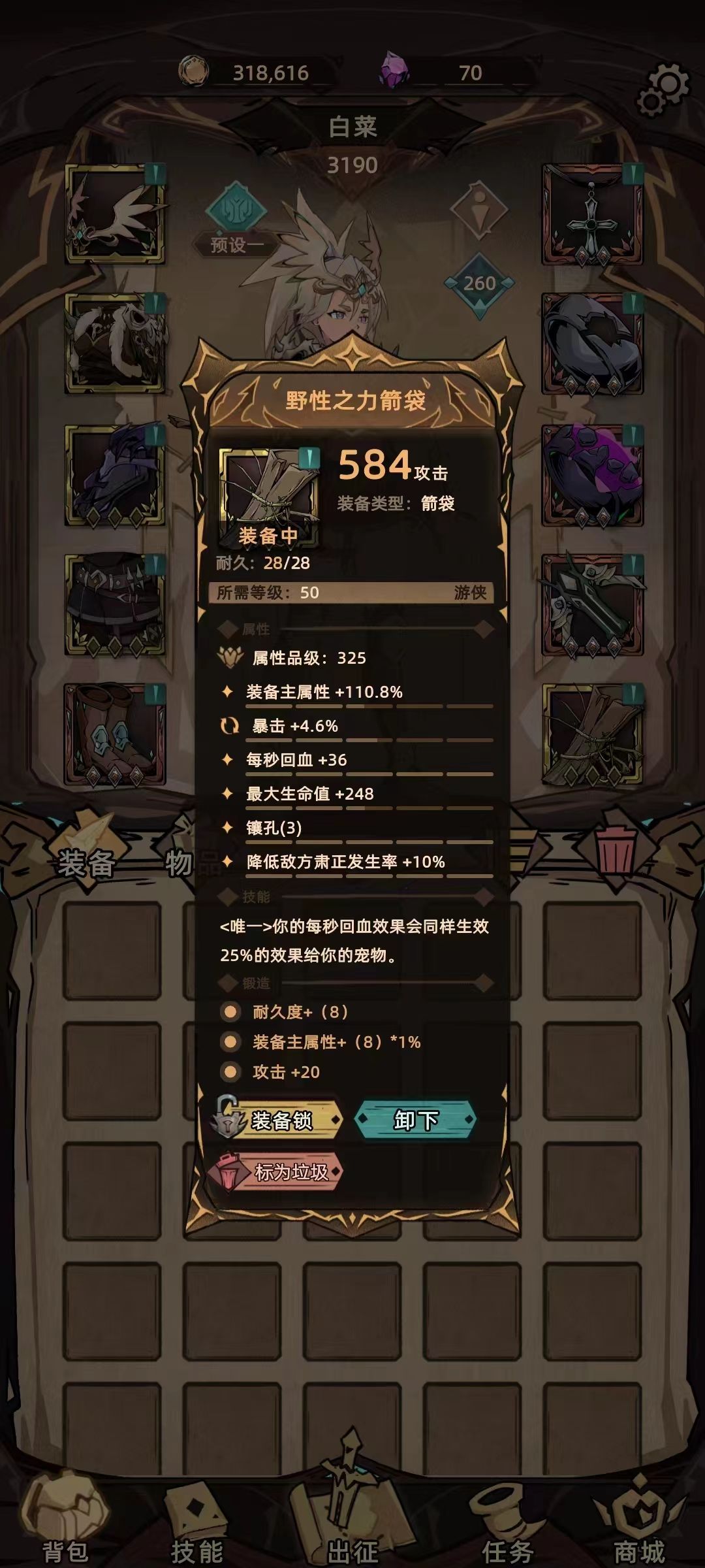 箭袋-没找到特别合适的,野性之力提供动物回血,先用着