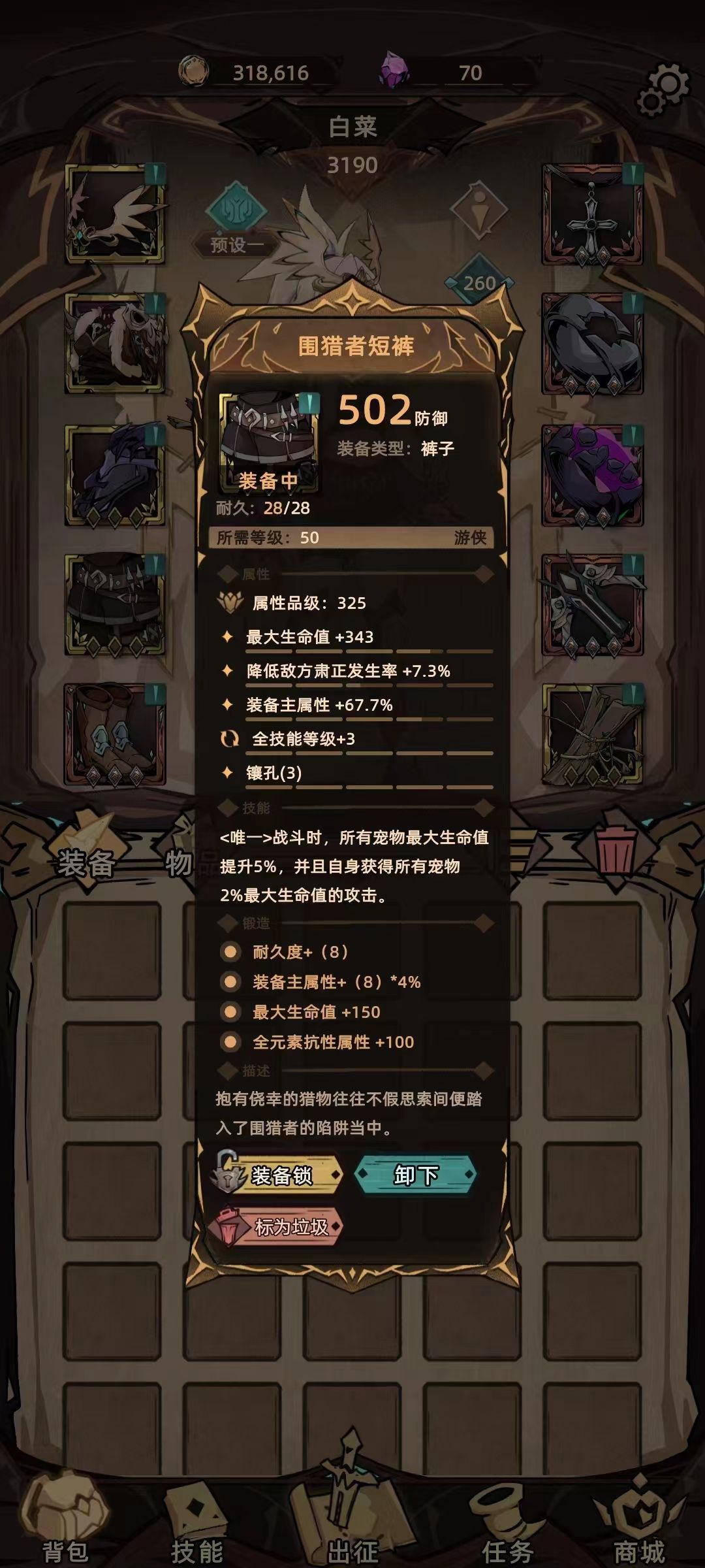 围猎短裤-技能+3和动物加成