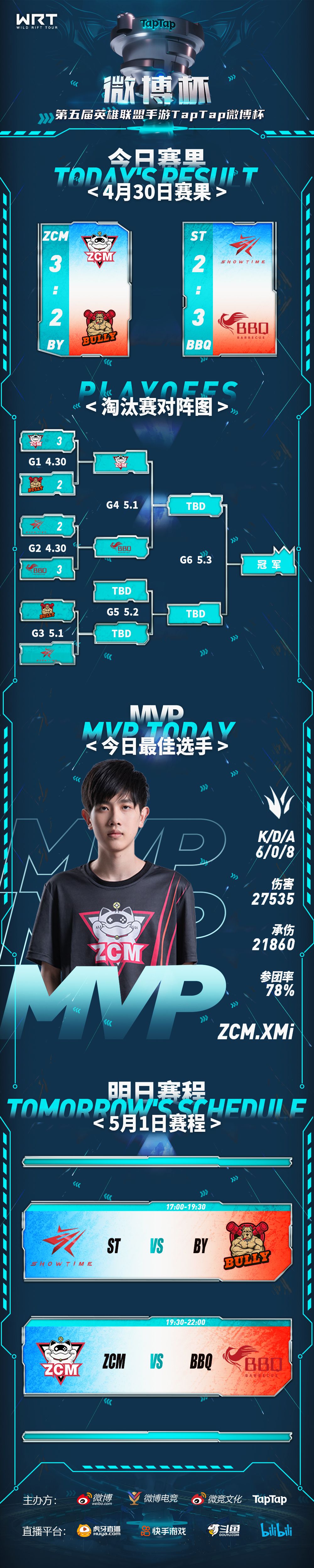 【淘汰赛胜者组半决赛赛果&明日赛程预告】ZCM.XMi获今日MVP