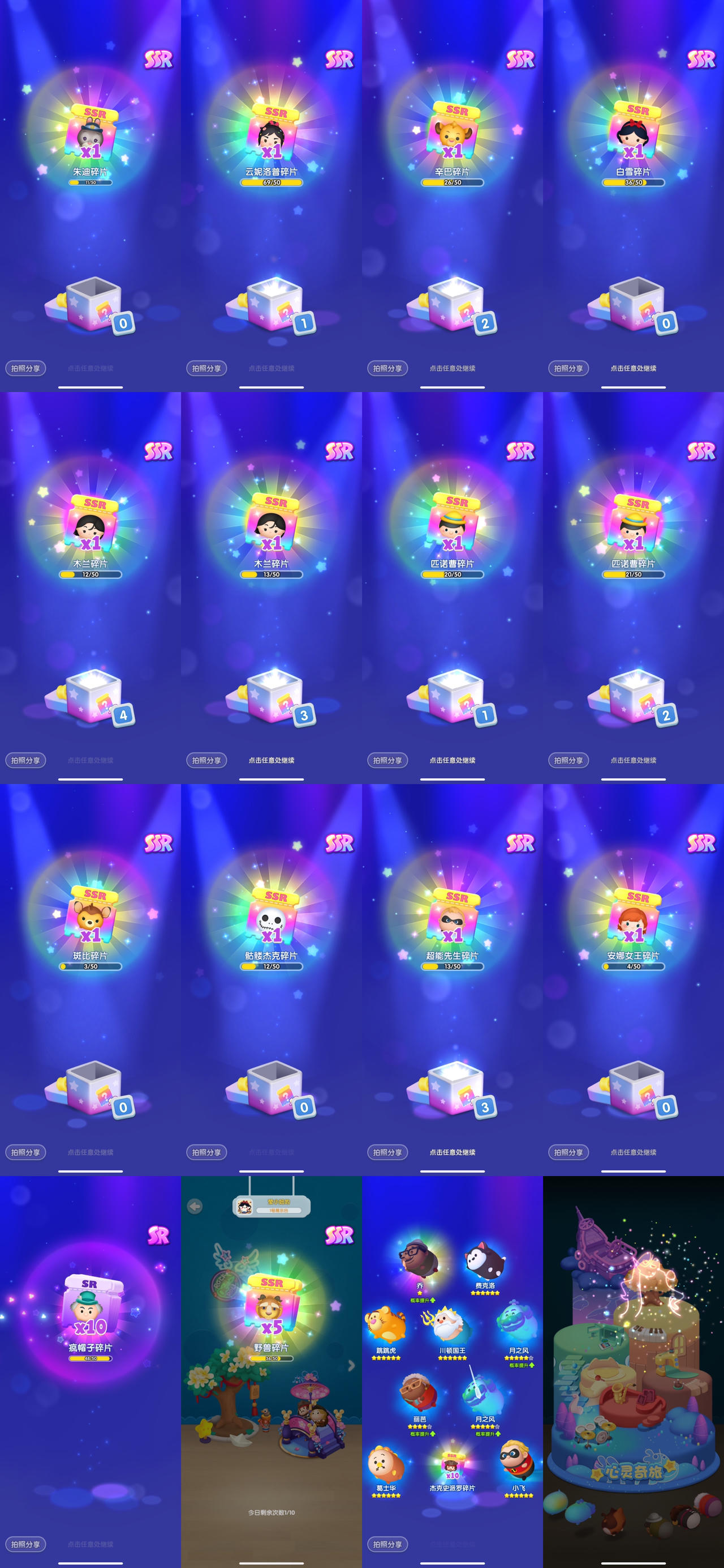 7日份的SSR碎片:爱丽丝x3、艾莎x5、朱迪x2、辛巴x1、野兽x7、云妮x1、毛怪x1、莫阿娜x3、木兰x1、巴斯光年x2、闪电麦昆x1、匹诺曹x1、尼莫x1、爱洛x1、福运米奇x3