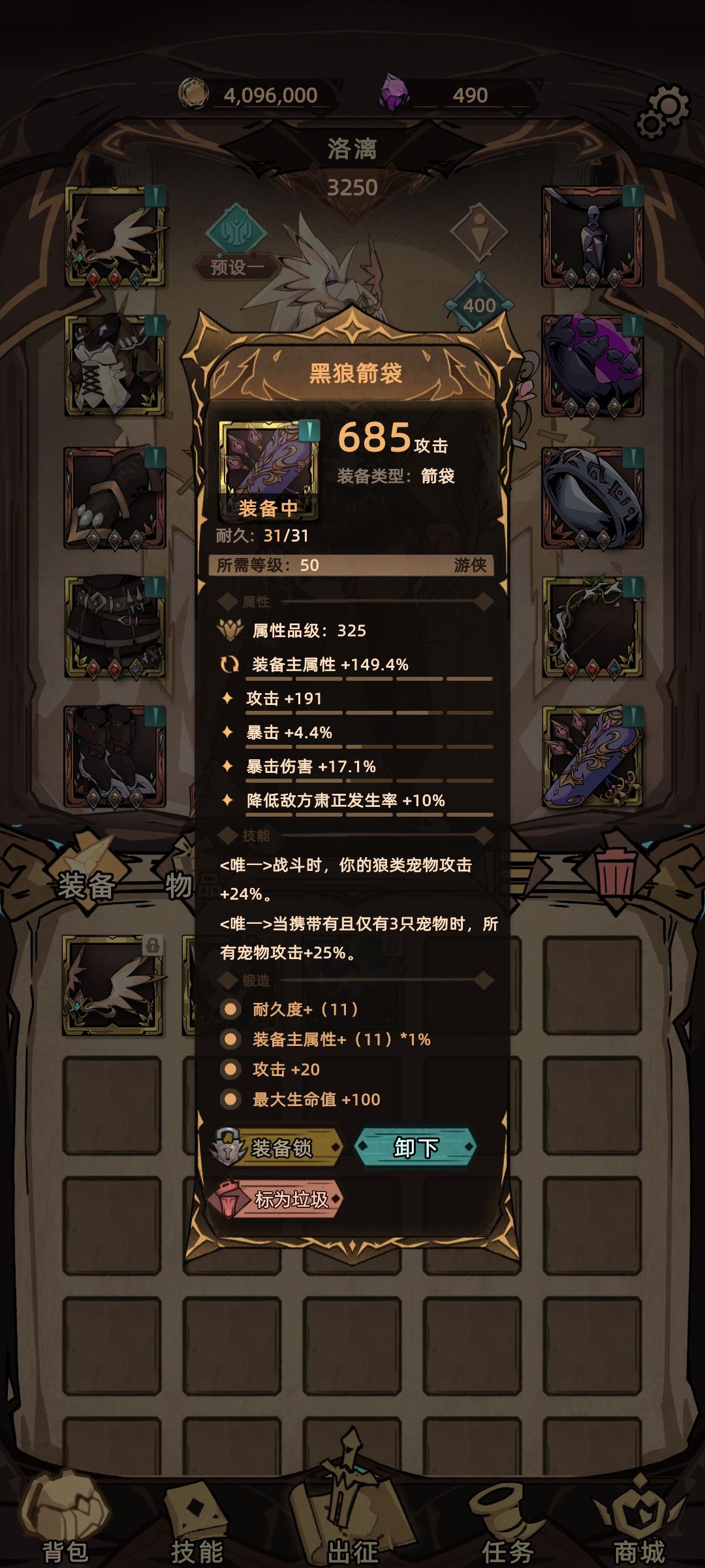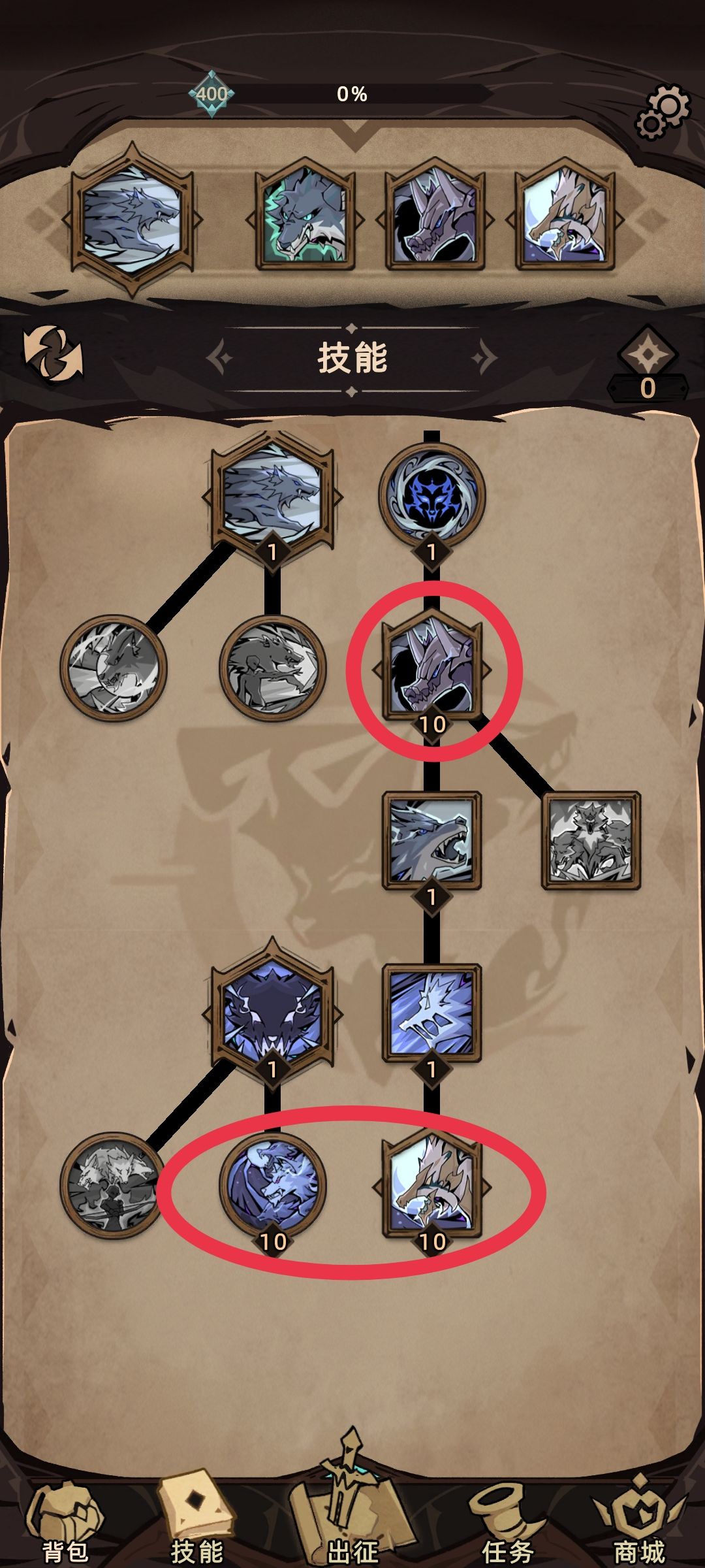 技能方面,普攻技能嗜血指令无论加多少级都只奶自己10%,所以一级就足够了,核心aoe邪狼必满,狼王点满主要是为了BOSS关卡伤害高点,核心被动群狼必满,臂弩掌握见仁见智,每级成长只有0.5,自己选择吧![[嗒啦啦4_好气哦]](https://img.tapimg.com/market/images/720ff2dcca775b461dc77a398c35dcb8.gif)