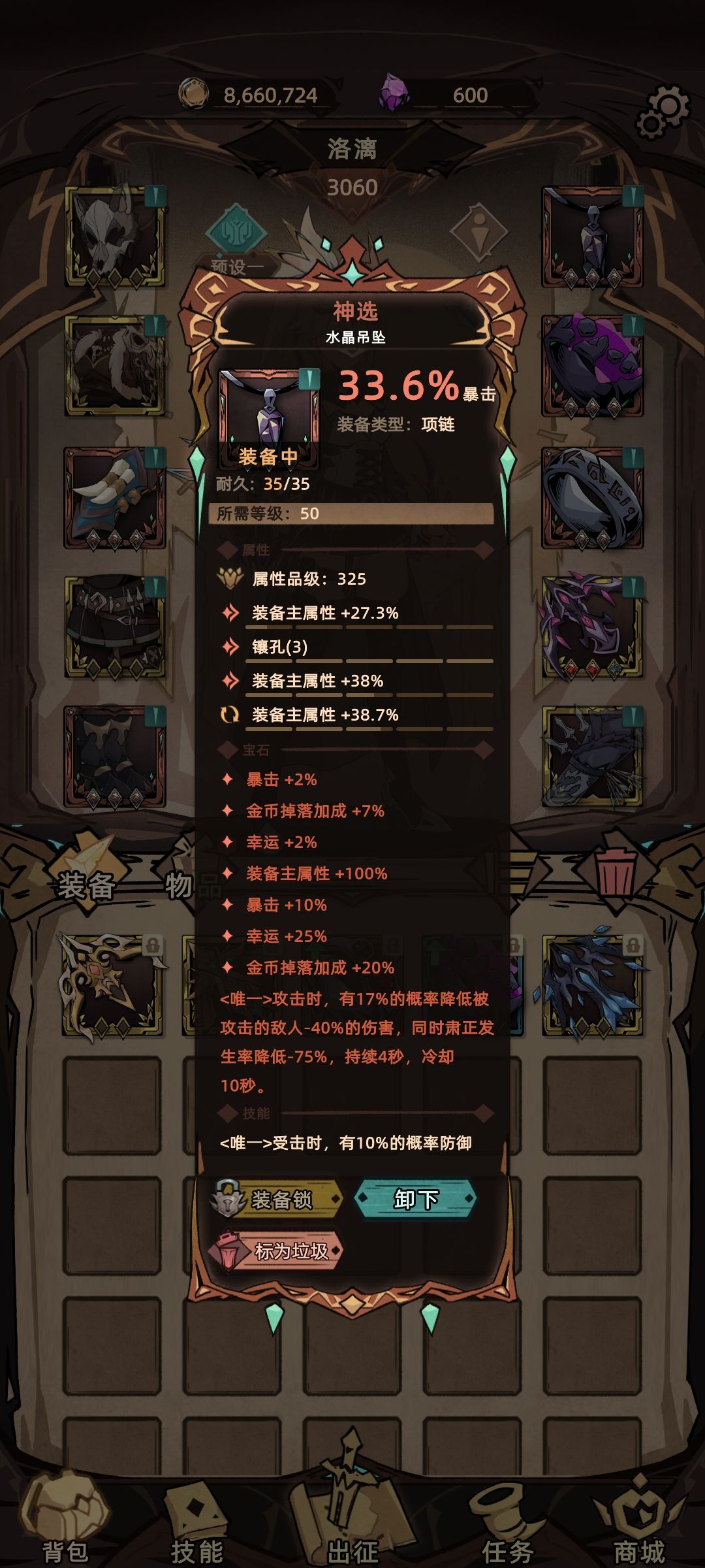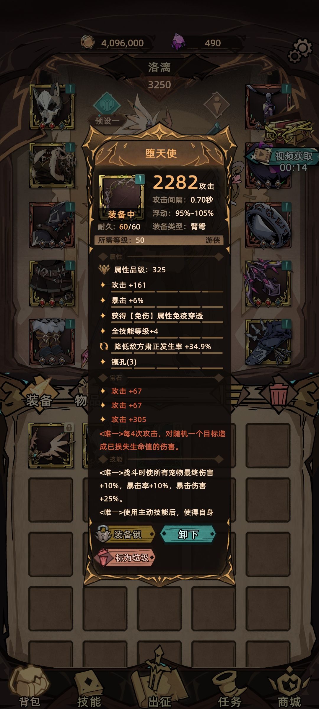 武器,强化没起来之前,金翼的50%终伤加成完爆所有武器,只是没有降肃正美中不足。在后期强化起来之后选择堕天使。