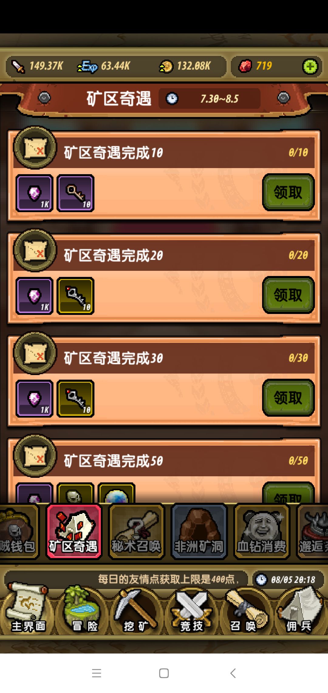 各种活动8月5,今天打算竞技场用钻补满70次,亏大了,竞技场一群变态,根本打不过