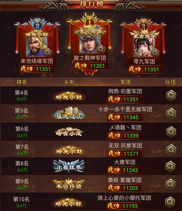 本次汉中之战中排名第一的是 龍之戰神 军团。