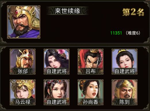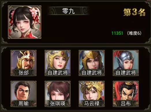 张郃、周瑜、张琪瑛、马云禄、吕布、孙尚香、陈到和三位自建武将